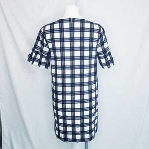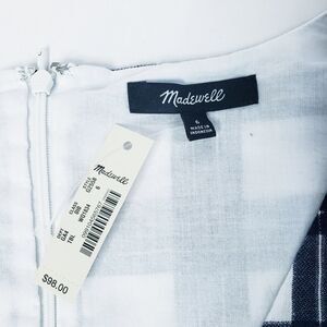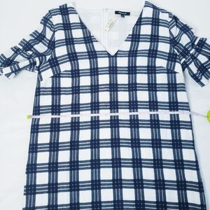 NWT Madewell Leighton Bell Sleeve Dress Navy White Plaid Size 6