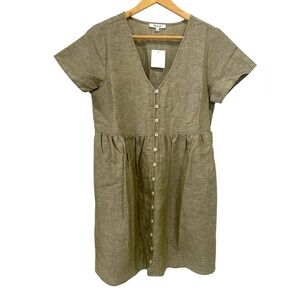 NWT Madewell Linen-Blend Alexandra Button-Front Mini Dress in Olive Branch - S