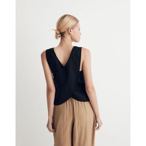 NWT Madewell Linen-Blend Cross-Back Sleeveless Top in True Black Size 0