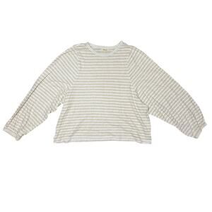 NWT Madewell Long Balloon-Sleeve Crewneck Tee in Stripe Size L