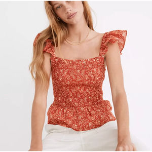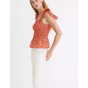 NWT Madewell Lucie Smocked Peplum Top in Piazza Floral size 12