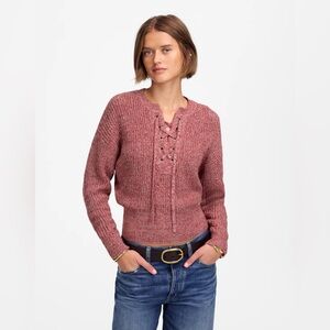 NWT Madewell Marled Ribbed Lace-Up Sweater