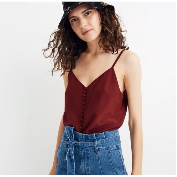 NWT Madewell Maroon Silk Button Down Cami Size 24 Spaghetti Straps Base Layer