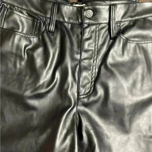 The cut: a brand-new best seller, our straight-legged '90s supermodel jeans have a waist-accentuating high rise. The fabric: soft-to-the-touch faux leather that drapes nicely over the body.