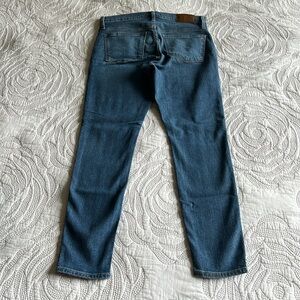 9 3/4" high rise, fitted through the hip and thigh, with a 9 3/4" skinny leg opening, 26" inseam.