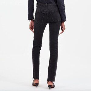 The cut: complete with raw hems, these stovepipe jeans have a mid-rise for a laid-back vibe. Straight, slim leg. Zip fly closure.