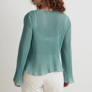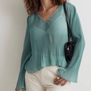 NWT Madewell Pleated Flare-Sleeve Top in Summer Breeze Blue Green Small