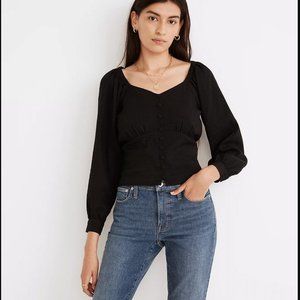 NWT Madewell Preston Puff-Sleeve Top in Black