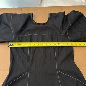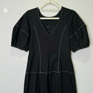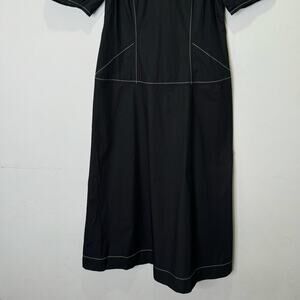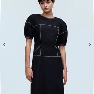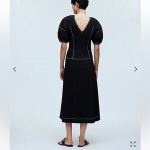 NWT Madewell Puff-Sleeve Drop-Waist Midi Dress Lightweight Cotton Black Size 0