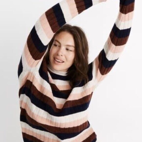 NWT Madewell Pullover Evercrest Alpaca Wool Blend Striped Sweater S