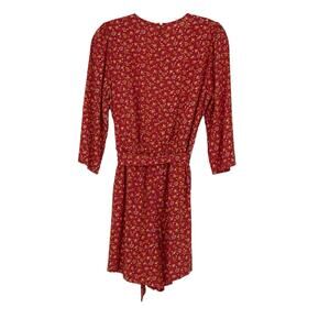 NWT Madewell Red Floral Wrap Style Romper Elastic Waist Sz 4 V-Neck Cottagecore