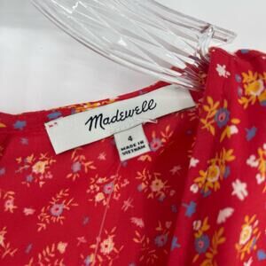 NWT Madewell Red Floral Wrap Dress with Elastic Waist in Size 4. Zipper back with 3/4 sleeves and elastic waist. This is so pretty! See all pics and measurements below.