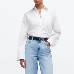 NWT Madewell Relaxed Button-Front Shirt in Poplin Eyelet White Size XXL