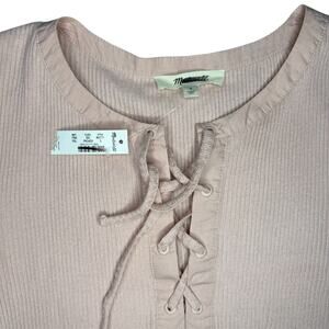 NWT Madewell Ribbed Lace-Up Short-Sleeve Tee Size S