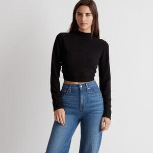 NWT Madewell Ribbed Mockneck Open-Back Crop Top Black Size Small