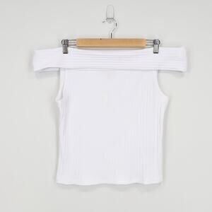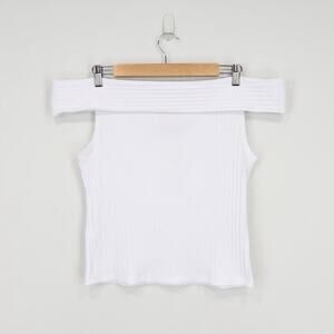 NWT Madewell Ribbed Off-The-Shoulder Top In Eyelet White Size Large