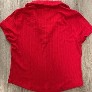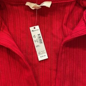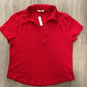 NWT Madewell Ribbed V-Neck Tencel Polo Tee Red Size Large
