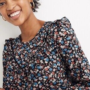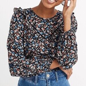 NWT Madewell Ruffle-Yoke Prairie Top in Spring Prairie Women's size Small