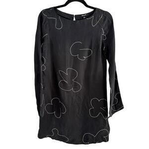 NWT Madewell Satin Long Sleeve True Black Shift Mini Dress Women’s Size XS