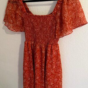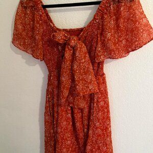 Lucie mini dress with square neckline, sheer flutter sleeves and a cutout tie back