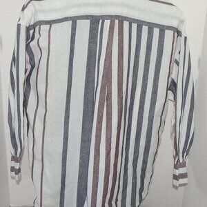 Effortlessly stylish and perfect for warm-weather layering, this Madewell Shirred Button-Up Shirt is crafted from a lightweight linen-cotton blend. The breezy silhouette and statement stripes give it that relaxed, lived-in feel Madewell is known for.