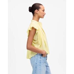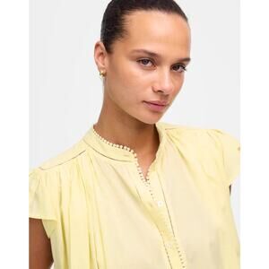 Madewell Shirred Lace-Trim Top in Iced Lemon Yellow Size Large