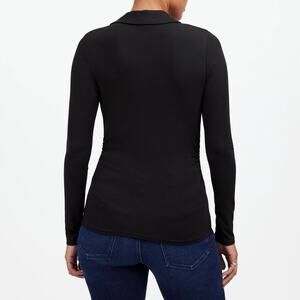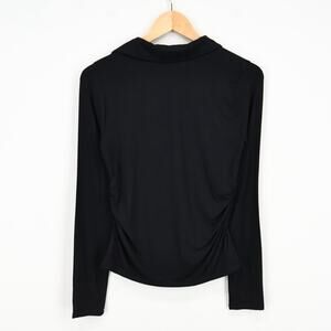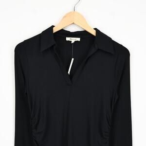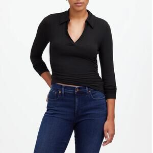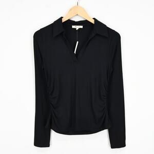 NWT Madewell Side-Cinch Long-Sleeve Stretch V-Neck Polo Top Jet Black Size Small