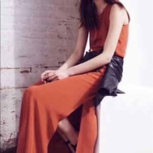 Silk, ankle-length maxi from Madewell. Waisted, with a nice side slit. Beautiful rust-orange color that works for all seasons. Has pockets! Brand new with tags. Gorgeous copper color.