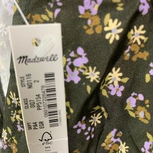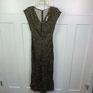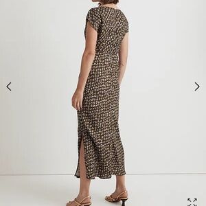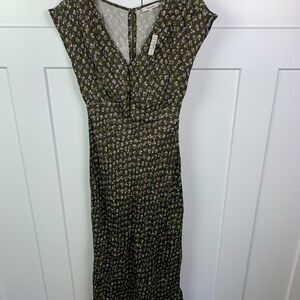NWT Madewell Size 2 Brown Floral Midi Dress V Neck Cap Sleeve