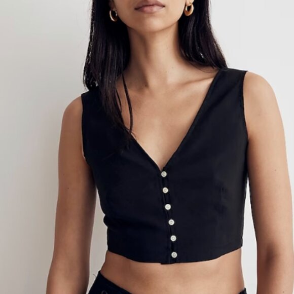 NWT Madewell Softdrape Gwen Crop Vest Top in Black, Sz 4