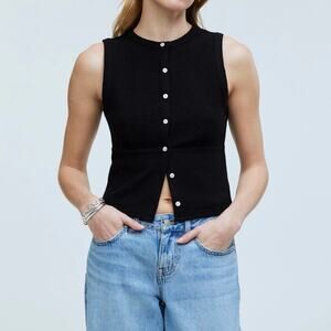 NWT Madewell Split-Crewneck Cardigan Sweater Tank In True Black Size XS