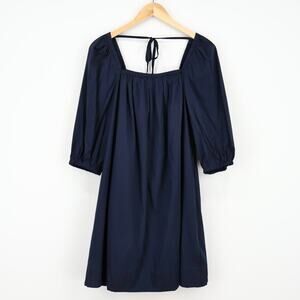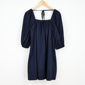 NWT Madewell Square-Neck Puff-Sleeve Babydoll Mini Dress In Navy Blue Size 4