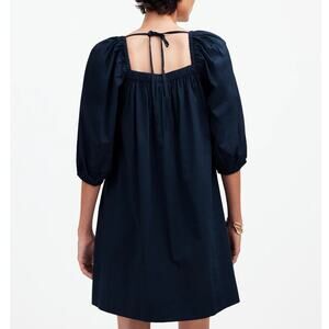 NWT Madewell Square-Neck Puff-Sleeve Babydoll Mini Dress In Navy Blue Size 4