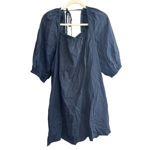 NWT Madewell Square-Neck Puff-Sleeve Mini Dress In Navy Size 14