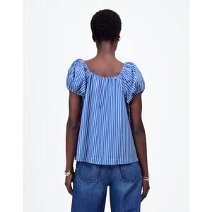 NWT Madewell Square-Neck Puff-Sleeve Shirt in Stripe Blue and White Size 2
