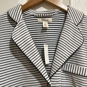 NWT Madewell Striped Knit Button Down Top Size Medium Blue White Short Sleeve