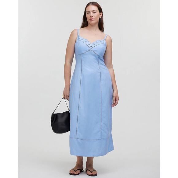 NWT Madewell Sweetheart Midi Dress in Linen-Cotton Blend In Light Blue Size 6