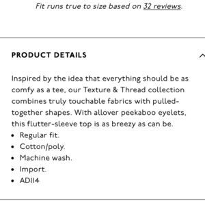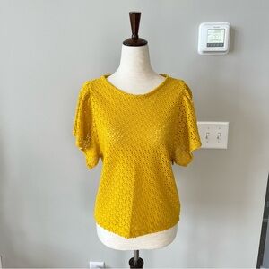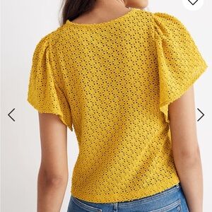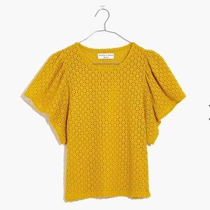 NWT! Madewell Texture & Thread Eyelet Flutter-Sleeve Top - Mustard Summer Yellow