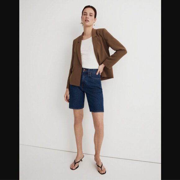 NWT Madewell The Dorset Crop Blazer in Easygoing Crepe in Light Roast