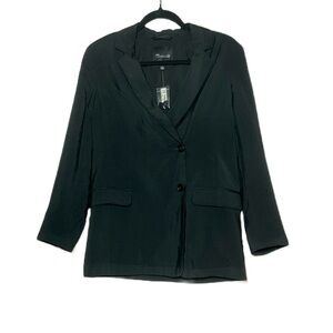 NWT Madewell Black The Relaxed Blazer in Softdrape Tencel, 2-Button Front/Side Closure, OVERSIZED, Size XXS.