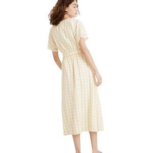 NWT Madewell Tie-Waist Midi Dress in Pale Yellow & White Check Gingham