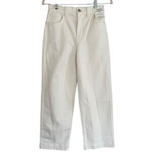 NWT Madewell Tile White The Perfect Vintage Wide Leg Crop Jeans. These jeans have a classic style high waist with wide slouchy legs and a traditional five pocket design. The denim does have some stretch for comfort. This pair also has Madewell’s magic pockets for an extra flattering fit.