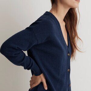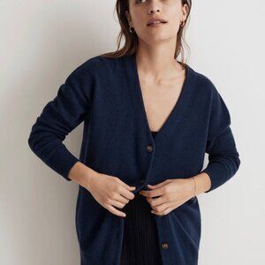 NWT Madewell V-Neck Harlow Cardigan Sweater Relaxed Navy Blue Wool Blend XXS NEW