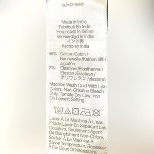 FABRIC: 98% Cotton and 2% Elastane. Machine washable.
