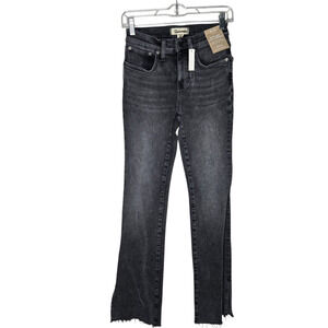 NWT Madewell Womens 24 Jeans Kick Out Full Length Frayed Bootcut Mid Rise Black