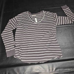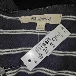 NWT Madewell Womens Brown Striped Softfade Cotton V Neck Relaxed Tee Tshirt XS