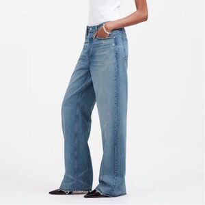 Keywords: Madewell, wide-leg jeans, women's jeans, blue denim, relaxed fit, casual wear, five-pocket, Hamburg wash.