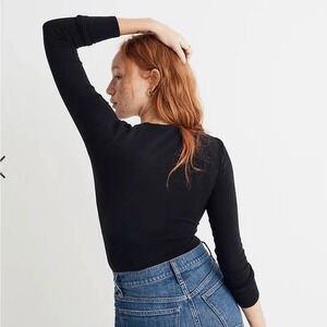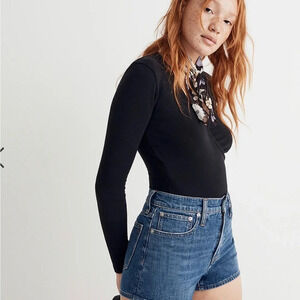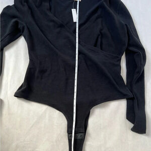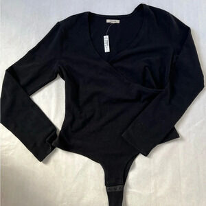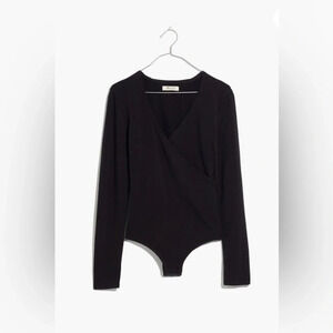 NWT Madewell Wrap Thong Bodysuit in True Black Women Long Sleeve Top XL