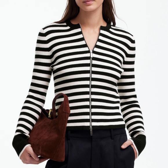 NWT Madewell Zip-Front Cardigan in True Black Stripe
