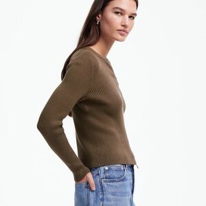 NWT Madewell Zip-Front Ribbed Cardigan Sweater Olive Green
